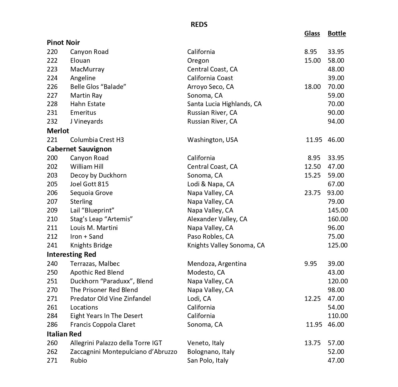Wine List